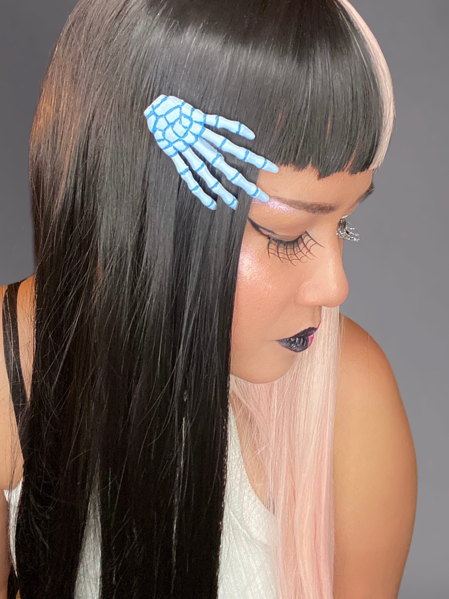 Hand Painted Ghastly Corpse Blue Skeleton Hands Hair-clips
