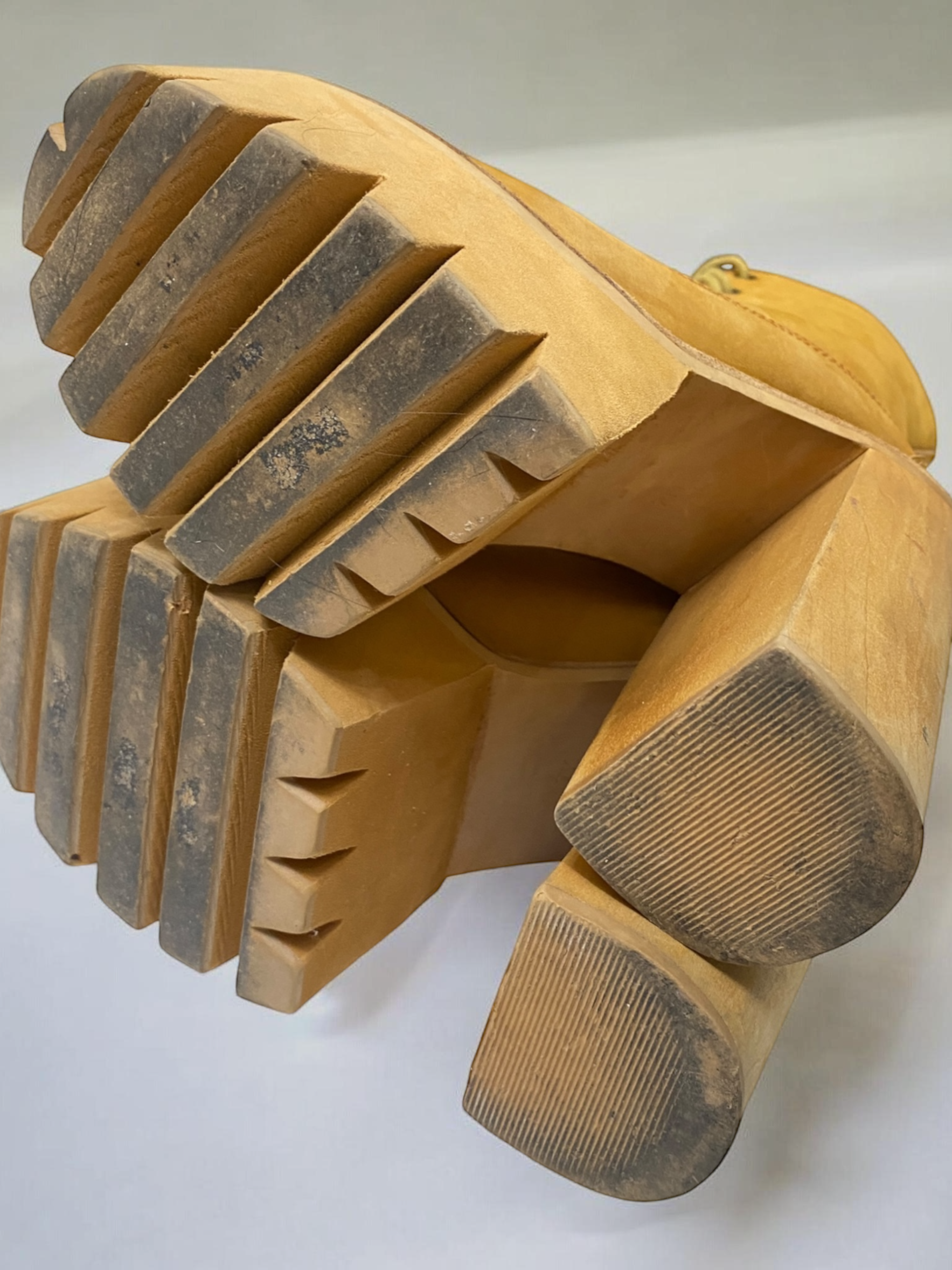 These boots are legit well made. Heavy and solid construction. Not for the faint of heart. Genuine nubuck leather upper w/ faux shearling inner lining, lace front closure, durable cleated platform and solid wood heel. Can be worn two ways -fully laced, or folded down to show the shearling.