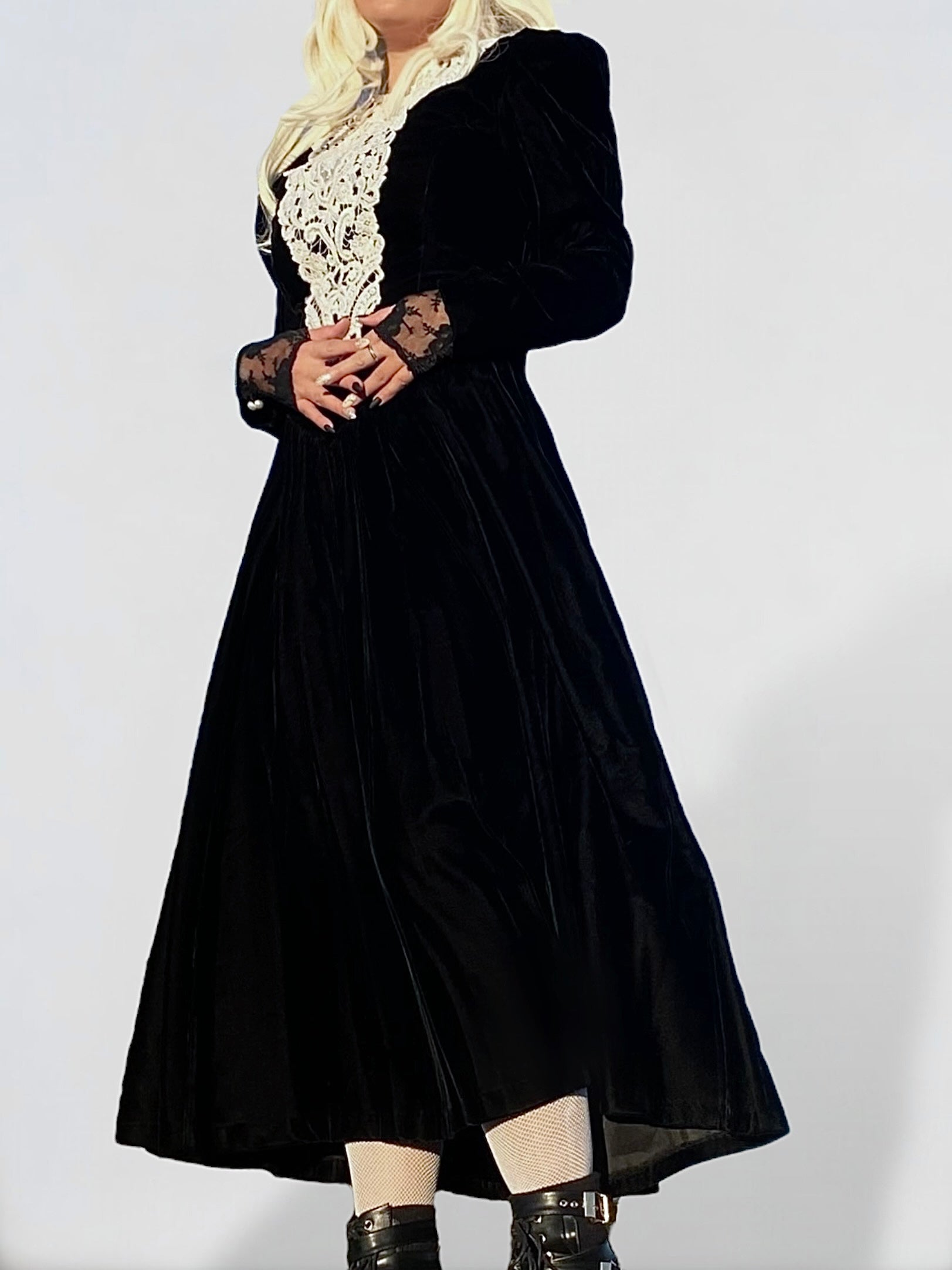Vintage Jessica McClintock Black Velvet Embroidered Maxi Dress Prom Wedding Gown