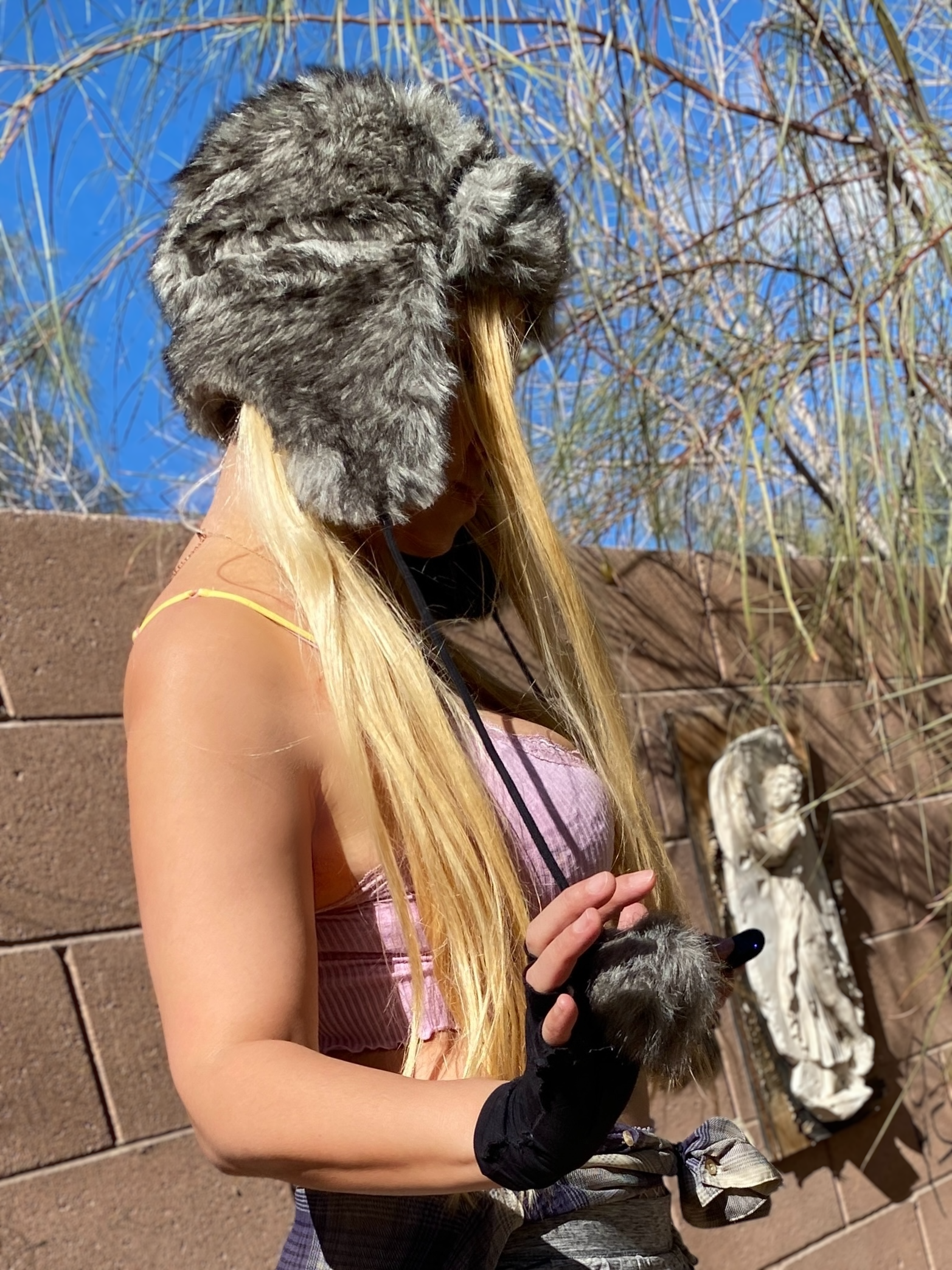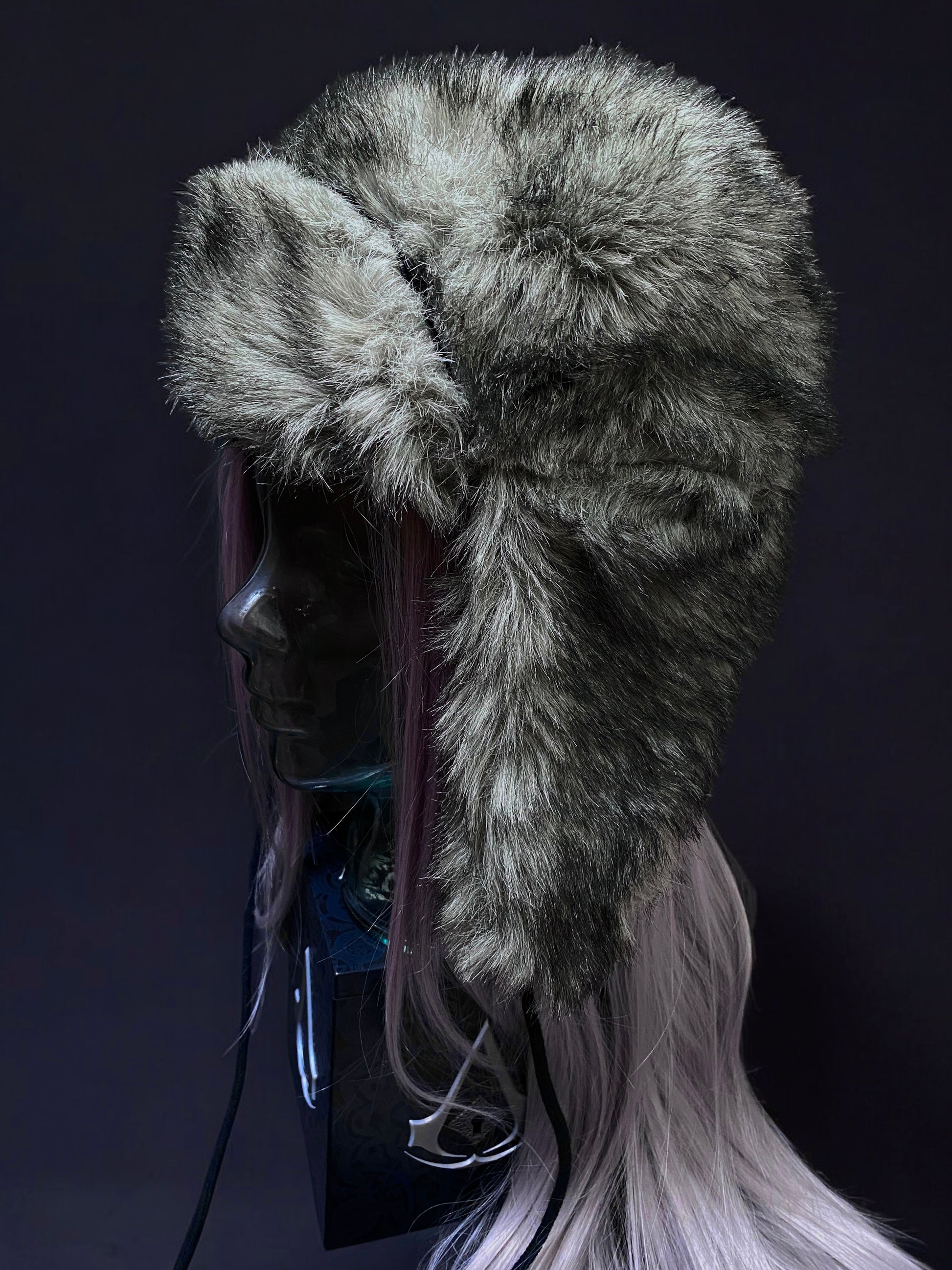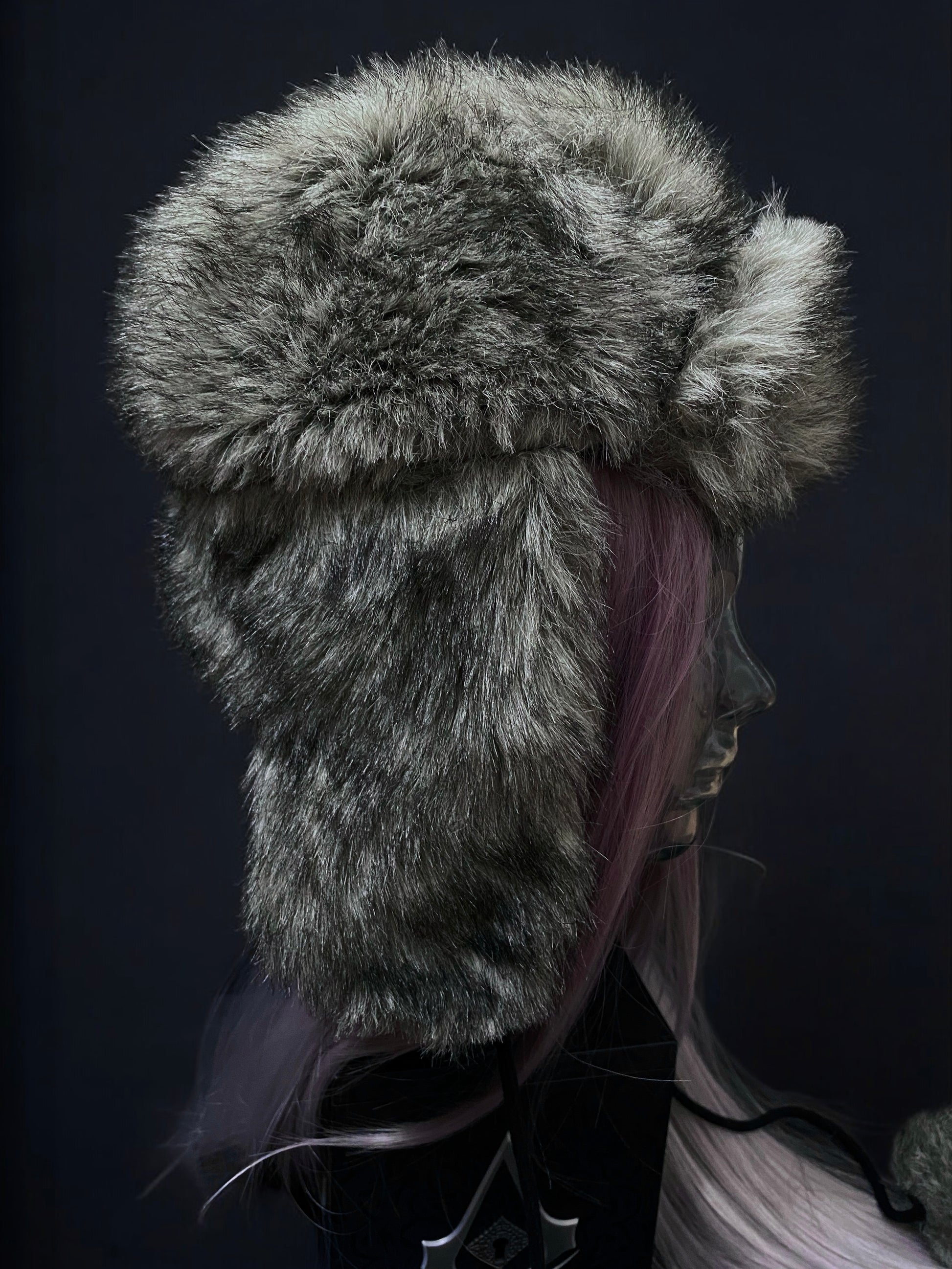 Y2K Grey Cyber Grunge Faux Fur Trapper Hat